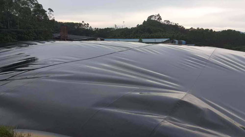 豬場將原干清糞工藝改建成“水泡糞”工藝厭氧塘的原理與其他厭氧生物處理過程一樣,依靠厭氧菌的代謝功能,使有機底物得到降解。全封閉厭氧塘就是利用黑色的HDPE防滲透膜將氧化塘底部、頂部密封成一體的大型厭氧反應(yīng)器,俗稱黑膜沼氣池,它集發(fā)酵、貯氣于一體。由于它運行費用低、工程造價低、污水處理效率高、沼氣產(chǎn)量多等特點。